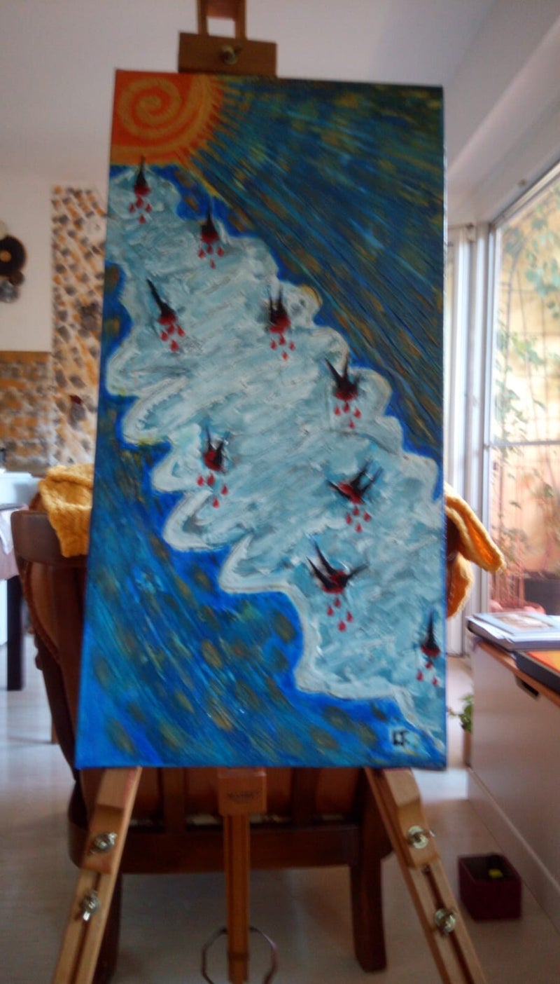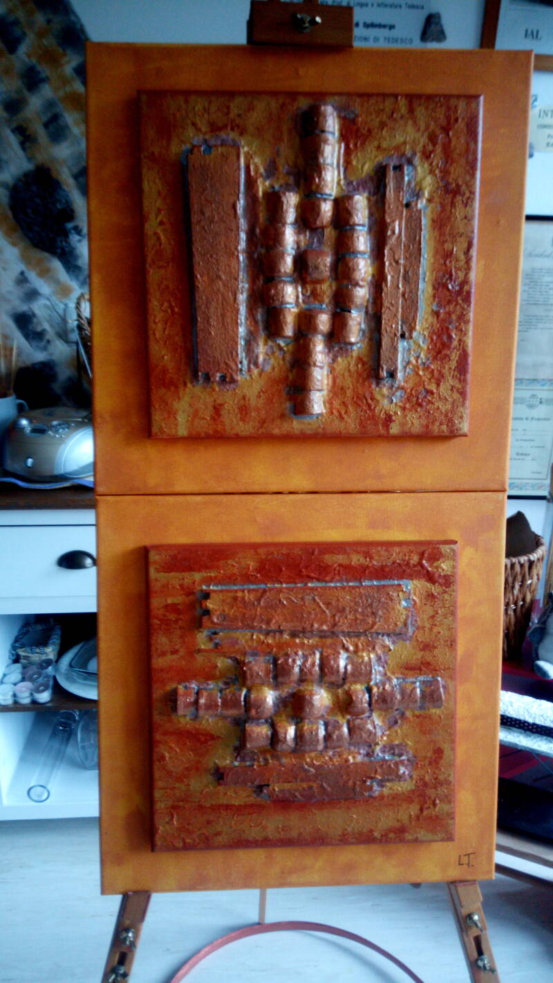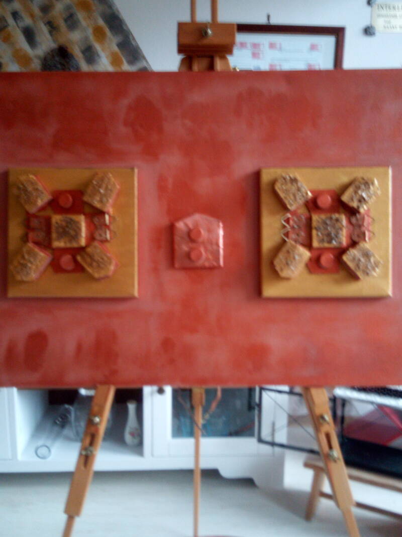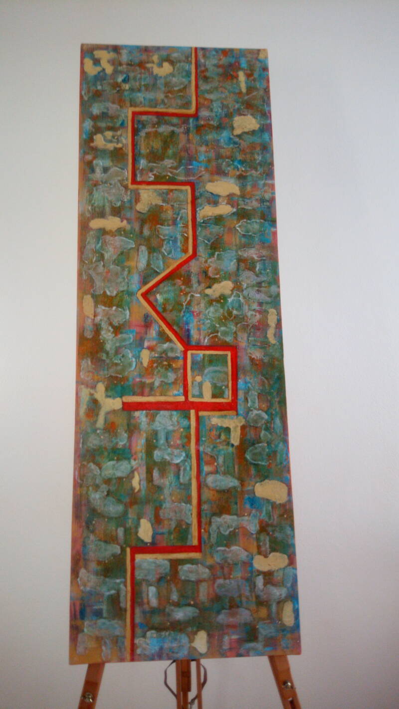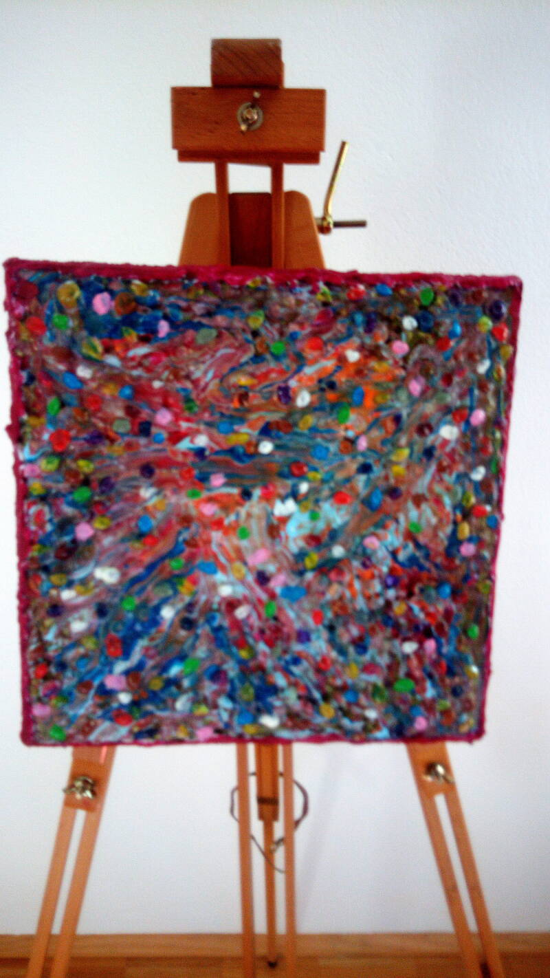 Ich möchte Euch hier einige meiner Arbeiten vorstellen. Die von mir verwendeten Materialien (Stein, Holz, Baumrinde, Wachs, Blätter und Beeren) habe ich aus der Natur, auf der Grundlage der Natürlichkeit. Um sie miteinander verbinden zu können, habe ich wo immer möglich mit flüssigem Bienenwachs gearbeitet – ein hervorragender Klebstoff. Hochwertige Acrylfarben sorgen für den Abschluss. Die glatten, hochpigmentierten Farben halten gut auf der Leinwand.